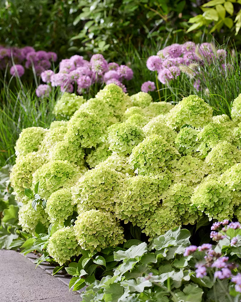 Little Apple — це компактний сорт волотистої гортензії, відомий своїм незвичним забарвленням, що нагадує зелене яблуко. Сорт різний тривалим періодом цвітіння (близько 100 днів), під час якого квіти змінюють відтінок від насичено-зеленого до світлішого або пастельного.