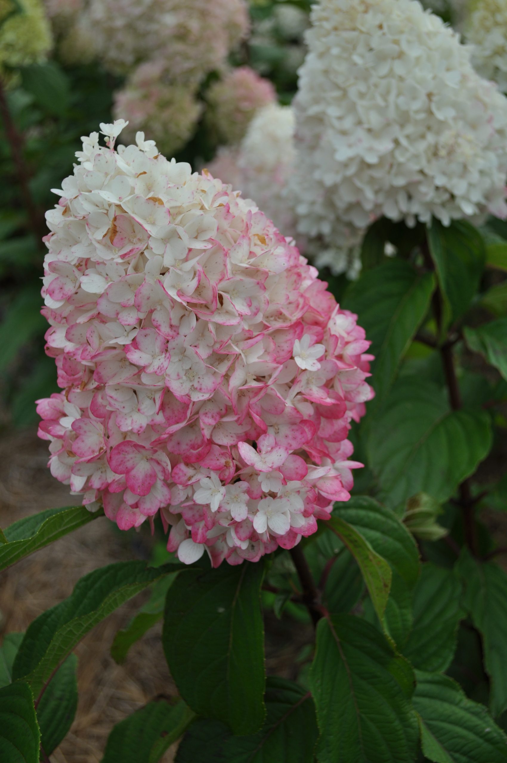 Strawberry Blossom – справжній напівничний цвіт – компактний сорт до 1,2 м. заввишки і такої ж ширини з великими суцвіттями біло-рожевого забарвлення. Квітки стерильні, зібрані у великих конусоподібних суцвіттях, що досягають 30 – 35 см завдовжки.
