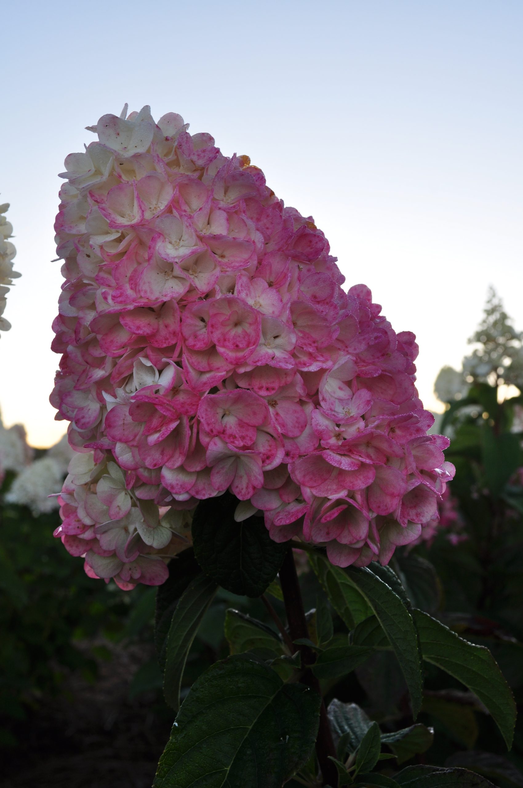 Кущ не розвалюється, листочки з яскраво-вираженими утопленими жилками, правильної форми. Гортензія волотиста ‘Sundae Fraise’ – це різновид гортензії, що характеризується зміною кольорів: в середині літа вона розкривається кремово-білим відтінком, а пізніше в сезоні стає полунично-рожевою. З наближенням осені вона знову змінюється, набуваючи насиченого рожево-червоного відтінку. Квітка конічна, пухка та пухнаста, розташована на кінчиках дугоподібних гілок. Кущ компактний та листопадний, тому його найкраще садити разом із вічнозеленою рослиною-компаньйоном.